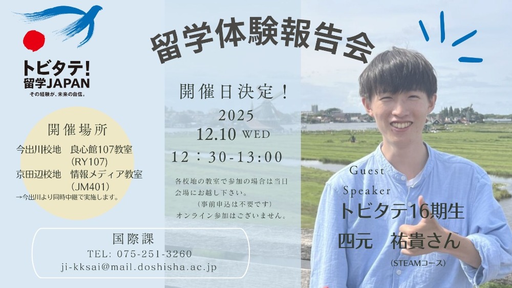 Doshisha Week 2025(ドイツ・テュービンゲン大学で開催)にて SPRING生の研究発表をおこないます!